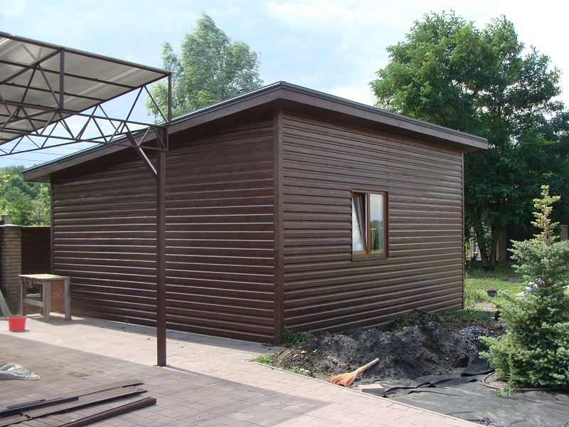 - Зовнішнє оздоблення фасаду профнастил під дерево.